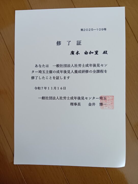 成年後見人養成研修を修了